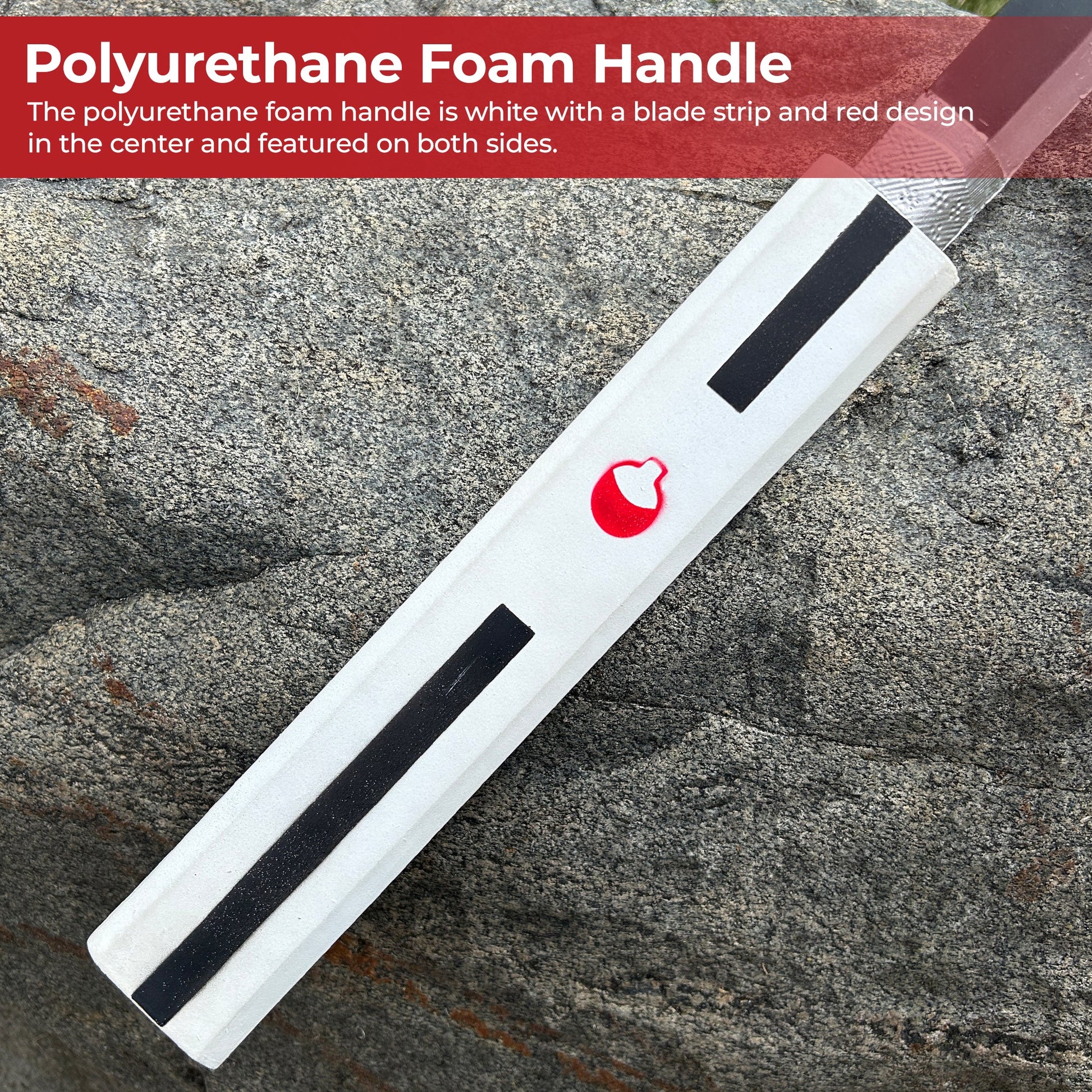 Wield the legendary blade of the Uchiha clan with the Anime Sasuke Kusanagi Foam Grass Cutter Sword. Crafted from durable polyurethane foam, this replica captures the distinctive appearance of Sasuke's sword in his Cursed Seal Level 2 Form. The blade features a traditional katana shape with a sleek black finish, while the handle showcases an authentic white finish with striking red designs on both sides. Perfect for cosplay, mock battles, or display, this foam sword brings anime fantasy to life with safe, lightweight materials.